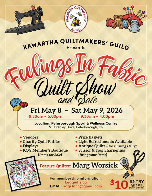 The Fibre Arts Festival and Sale 2026 - Peterborough will be held on Saturday, April 11, 2026, at the Peterborough Sport & Wellness Centre. For more information: Fibre Arts Festival and Sale 2026