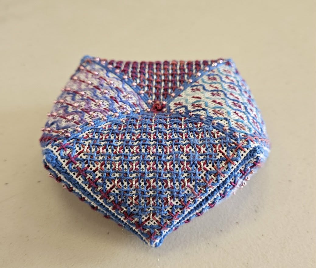 Olga - Biscornu Project stitched in blackwork and bargello