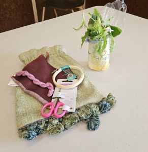 Mystery Bag - Won by Kelley (includes an embroidered vase holder made by Fiona using plant-dyed fabric)